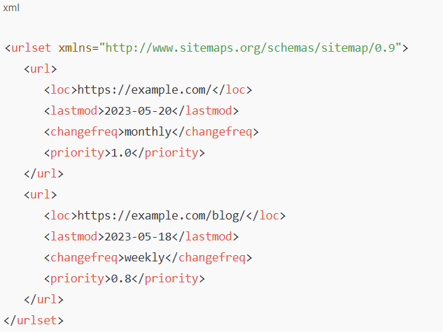 Here’s a simple example of an XML sitemap